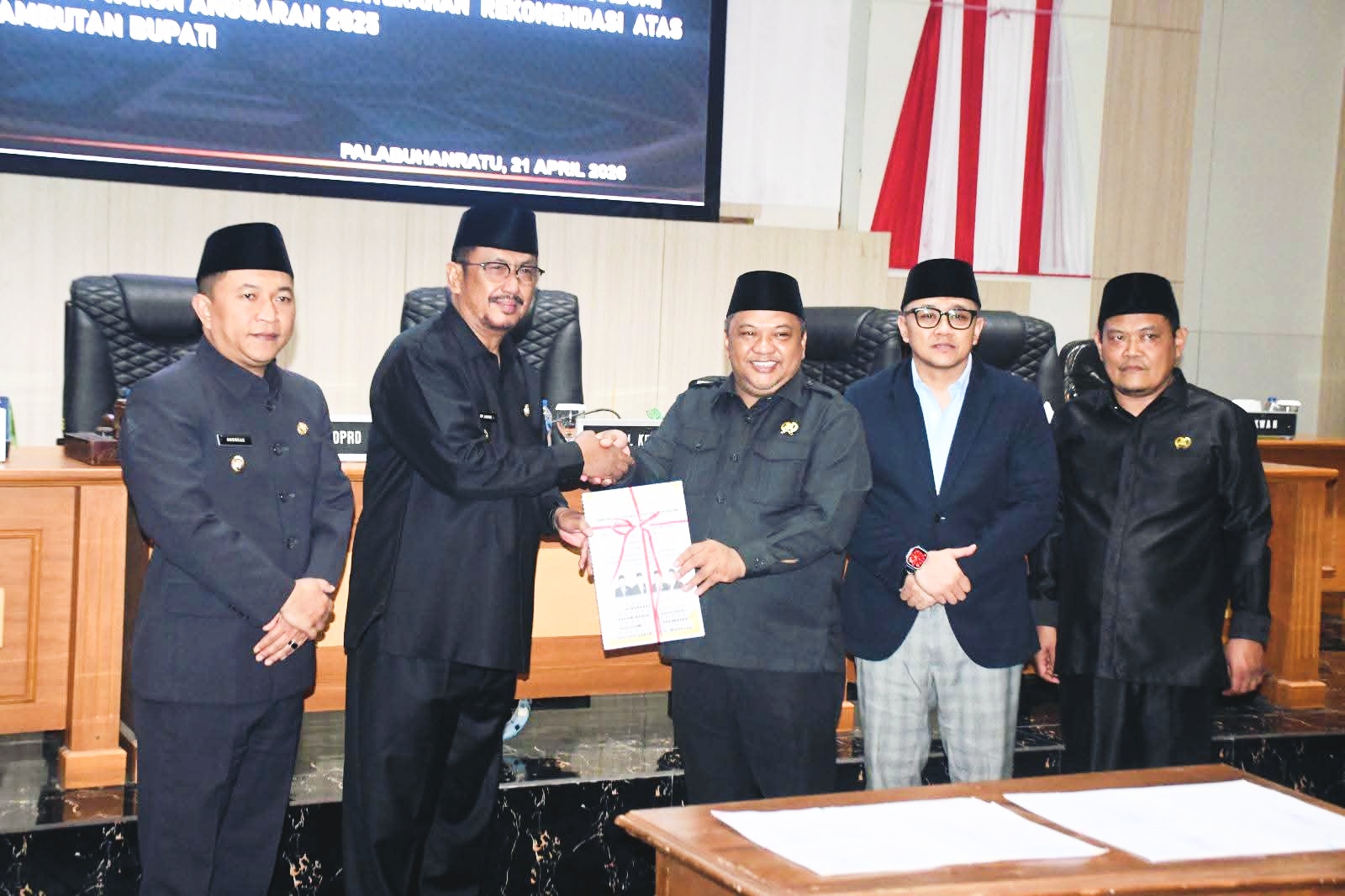 Dalam kesempatan tersebut, kedua pihak melakukan penandatanganan berita acara dan penyerahan rekomendasi atas LKPJ Bupati Sukabumi Tahun Anggaran 2025. ida