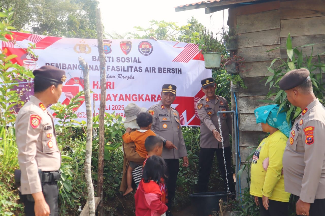 angka memperingati Hari Ulang Tahun (HUT) Bhayangkara ke-79. Di mana Polri menggelar kegiatan bakti sosial dengan memberikan bantuan fasilitas air bersih kepada masyarakat kurang mampu. Tidak hanya dalam penegakan hukum, tetapi juga melalui aksi nyata yang bermanfaat secara sosial dan kemanusiaan, ujarnya.