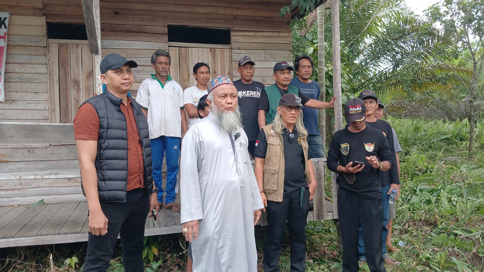 “Kami mendampingi warga yang sah menguasai lahan ini lebih dari 20 tahun. Di sini sudah ditanami sawit, karet, dan ada pondok berdiri sejak lama. Tiba-tiba muncul sertifikat atas nama pihak lain, yang justru memagari lahan dan melaporkan warga ke polisi,” ungkapnya.