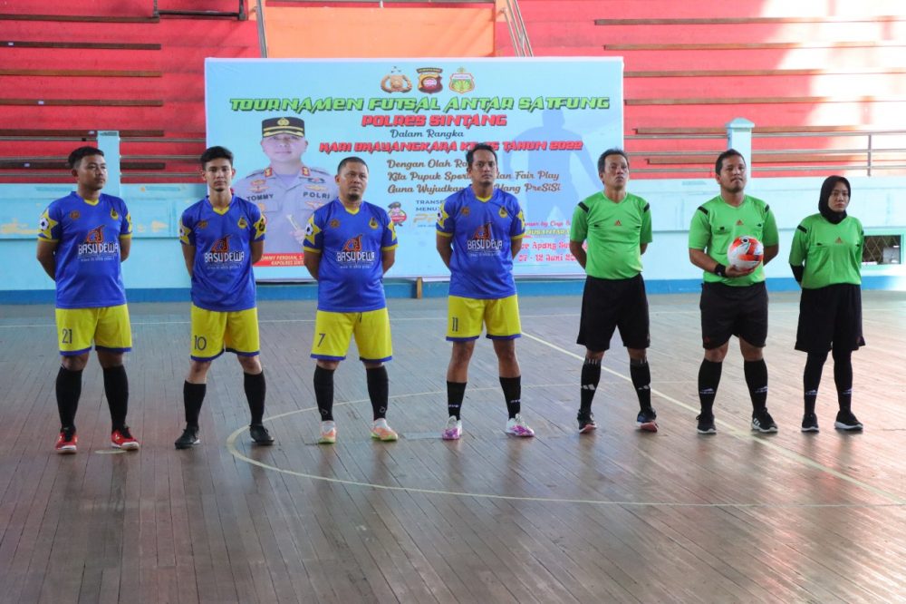 SINTANG, HR – Dalam rangka HUT Bhayangkara ke-76 Polres Sintang Kalimantan Barat menggelar turnamen futsal memperebutkan piala Kapolres Cup 2022, Selasa (7/6) Sore.